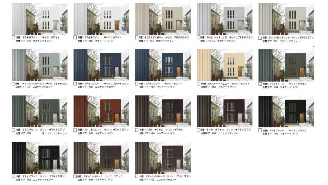 建物全体のデザインは、内観5パターン・外観18パターンの中から選ぶだけです。プロが考え抜いて造り出しているので、きっと気に入るデザインが見つかるはずです。
