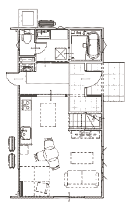 四角い箱型のスマートユニテは無駄な空間を造らないので、27坪タイプの空間でも十分な生活空間を体感できます。