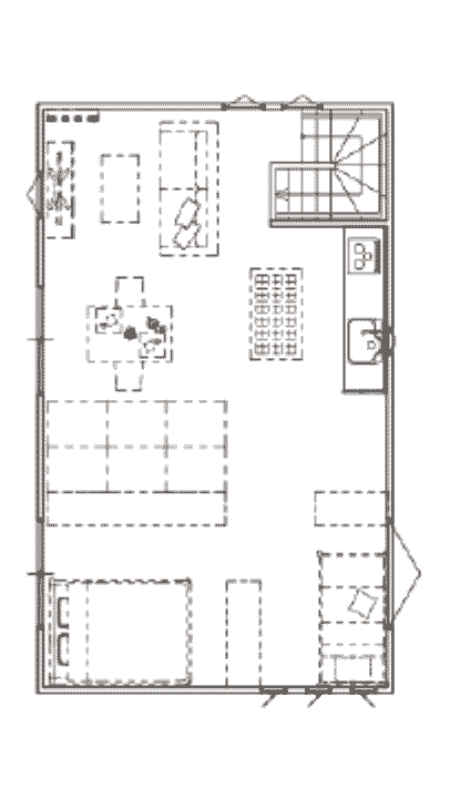 2階に配したLDKは壁のない大空間!ひとつの大きな箱を家具で自由に間仕切れる仕様ですので、住んでからも将来のライフスタイルの変化に対応します。ウッドデッキのアウトドアリビングの楽しみ方も自由自在。天気のいい日はここでランチもOK。笑顔あふれる毎日を約束してくれることでしょう。
